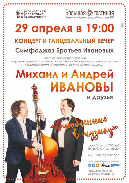 Концерт заслуженных артистов России Андрея (контрабас) и Михаила (фортепиано) Ивановых и танцевальный вечер "Влюбленные в музыку"